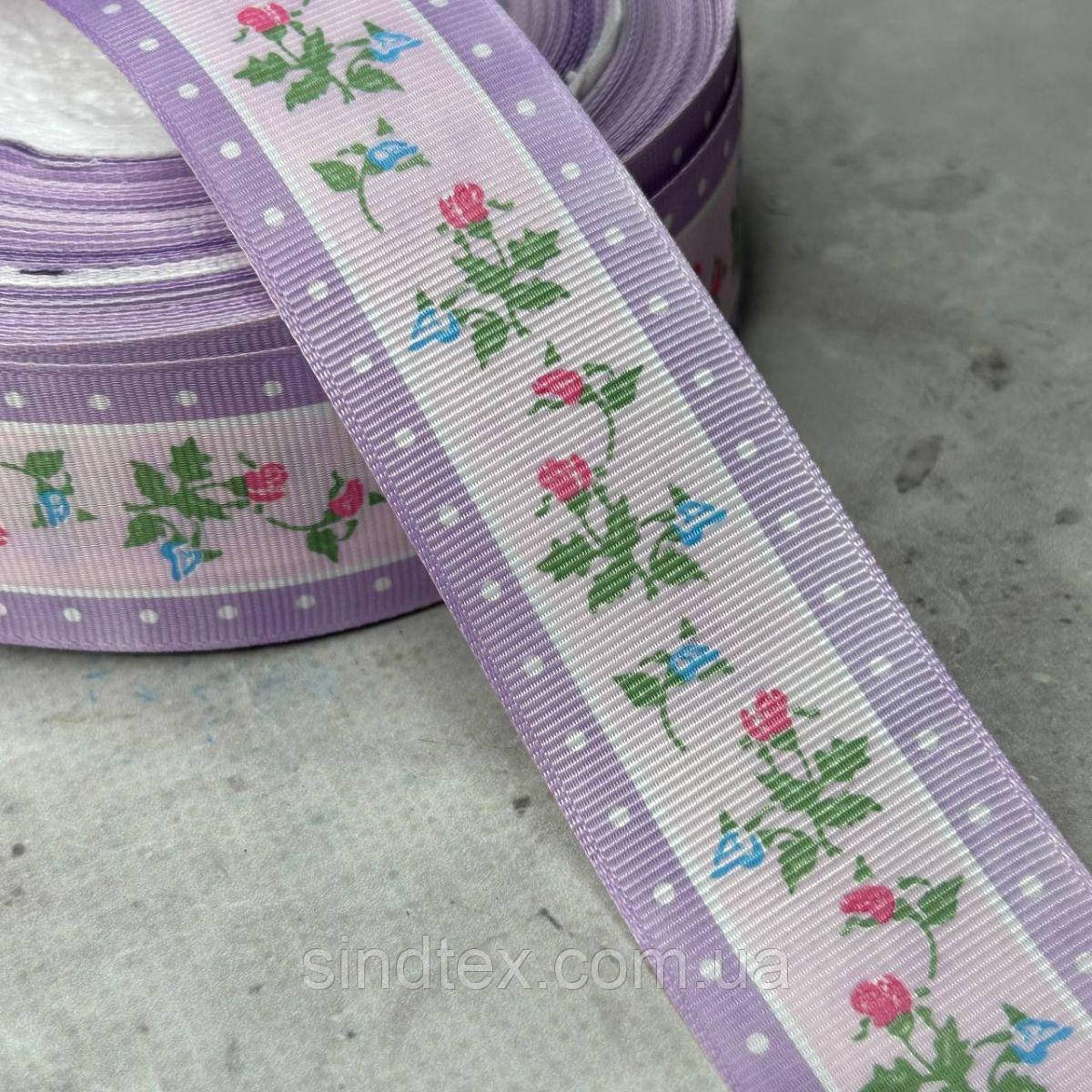 4 см Стрічка репсова з принтом на відріз - #746/1 бузковий